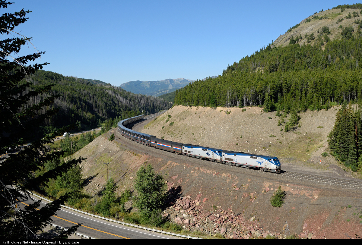 | On a spectacular late summer day, the eastbound Empire Builder is nearly to the summit of Marias Pass. Without John F Stevens' discovery of this legendary crossing of the divide, the privately financed Great Northern could very well have been "Hill's Folly." Instead, it still stands as the crown jewel of James J Hill's empire. |