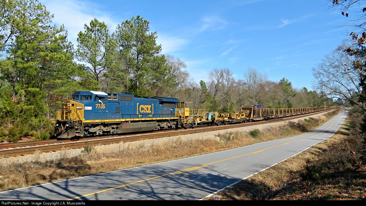 What turned out to be a very busy day on the CN&L Sub saw 2 coal trains, an autorack train, NS chip train, work train, and a few locals all run in daylight. For those that know the current state of the CN&L Sub, this is way above the normal standard. Here the CSX rail train slowly moves through Slighs as it prepares to stop at the next signal. The lead engine is CSXT's Chessie Heritage Unit.