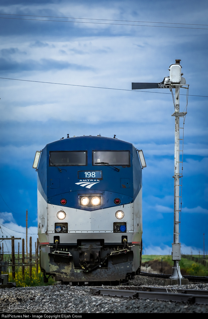 | Having just met its eastbound counterpart, Amtrak's westbound Southwest Chief slowly proceeds past an active semaphore signal as it makes its way back onto the mainline. |