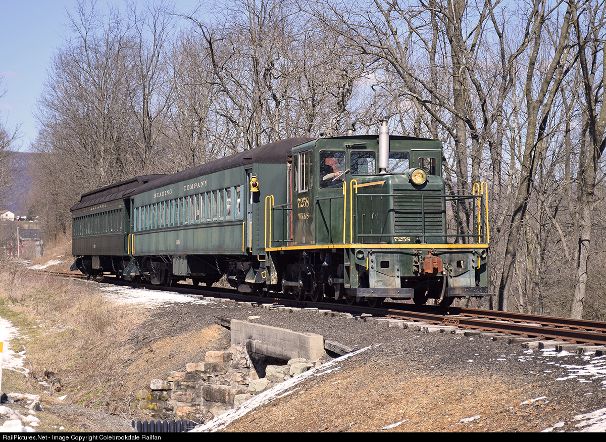 With the last remains of the 2018 "Bomb Cyclone" melting along the right of way, Wanamaker Kempton & Southern's Easter Bunny Express hurries South through Steinsville. In charge of the all green consist is 7258, a 1942 GE built for the U.S. Army. It is unusual these days to see 7258 in charge of a regular train, as well as the train being made up of only passenger cars.