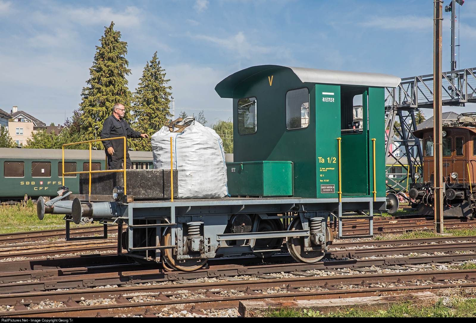 Little accumulator shunting vehicle, in Switzerland called "Traktor", Ta 1/2 # 2 "Rieter" of the association Historic Mittel-Thurgau-Bahn (VHMThB) in the Locorama at Romanshorn. This shunter "Rieter" (former owner company at Winterthur Töss, in service in Winterthur Wülflingen) was built in 1924 and rebuilt in 1953 and 1967 (this time by Stadler Bussnang).