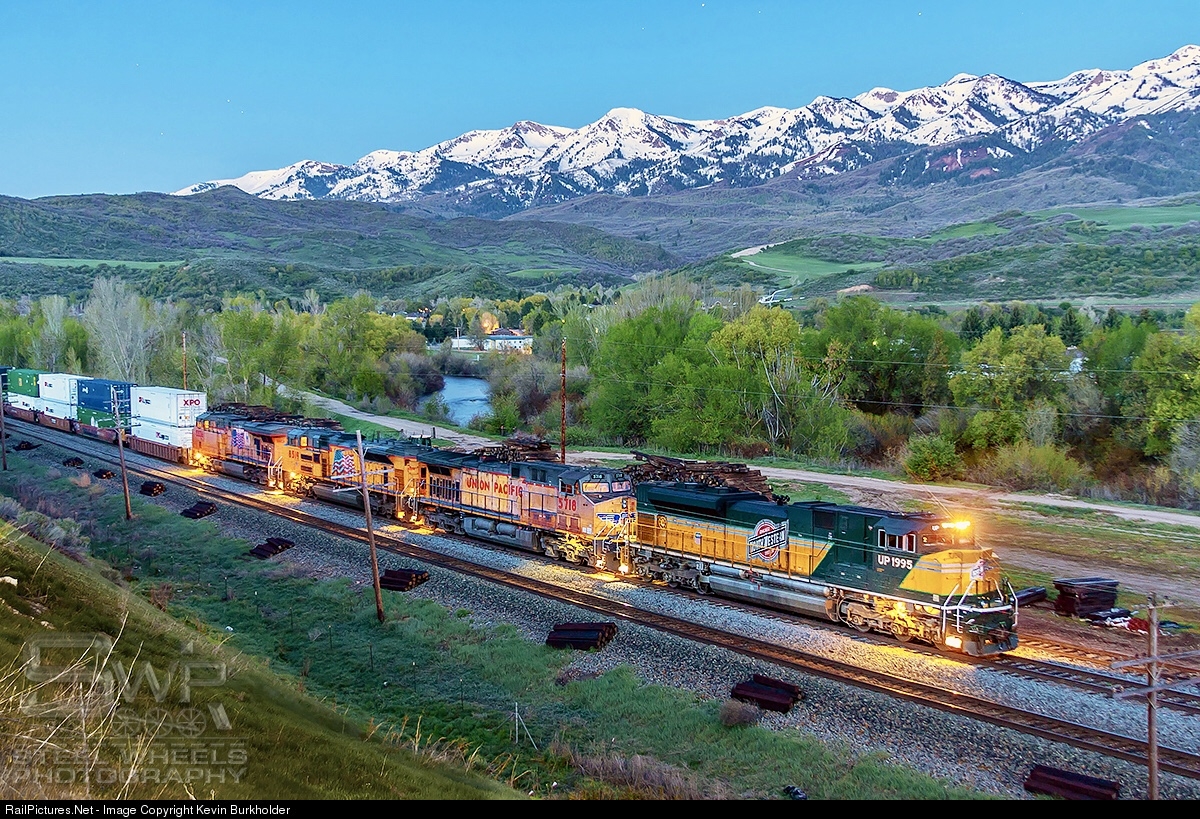 As the sun began to rise in the Wasatch Mountains on Saturday, May 11, a Union Pacific Chicago to LA intermodal train is seen making a pause at Peterson, Utah, with the Chicago & North Western tribute SD70ACe leading the westbound trip.