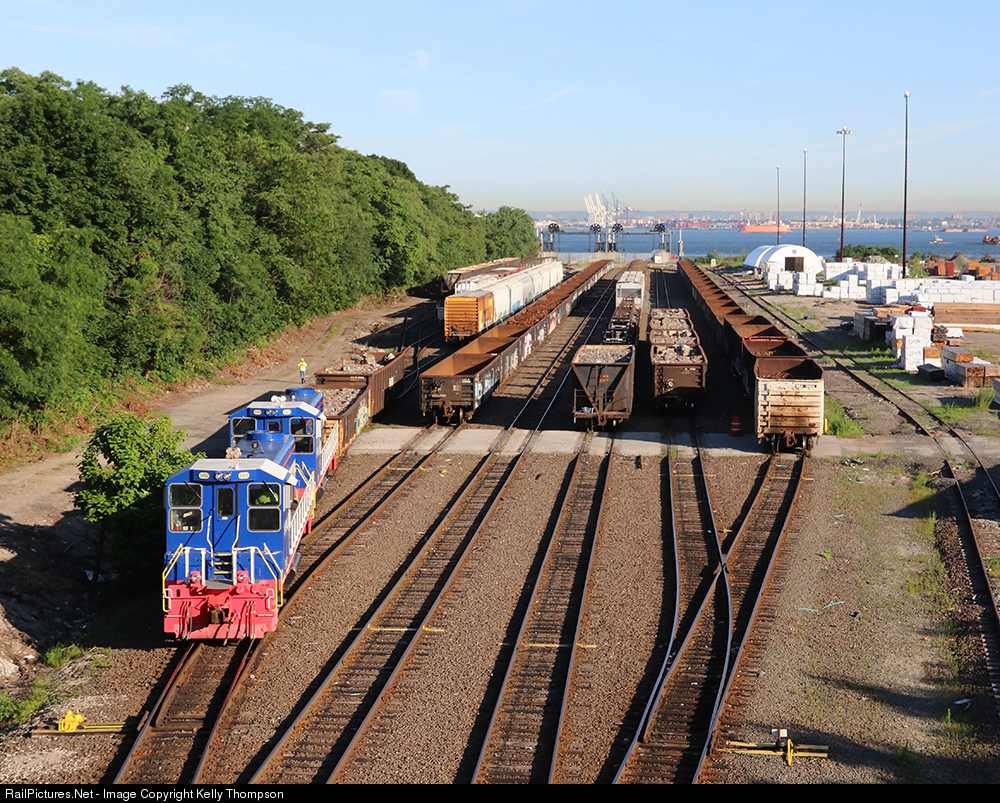 | NYNJ 5102 works their small Brooklyn yard on a beautiful sunny morning. The NYNJ is pretty cool as all of their traffic is ferried across the Upper Bay. In the background is Port Jersey and the Tear Drop Memorial. |