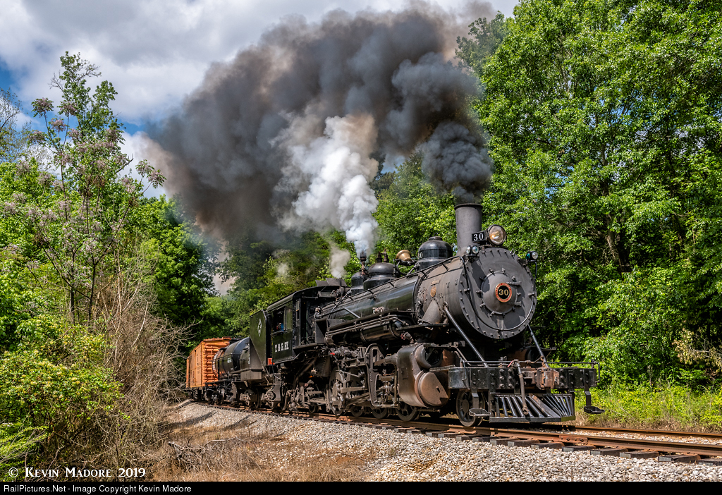 A line with a most unique history. The Texas State Railroad's big oil-burning, Tremont & Gulf Mikado #30 charges out of the (not-so) Piney Woods of East Texas at the Gibson Road crossing, hauling a 2019 Lerro Productions photo freight east toward Maydelle and Rusk.