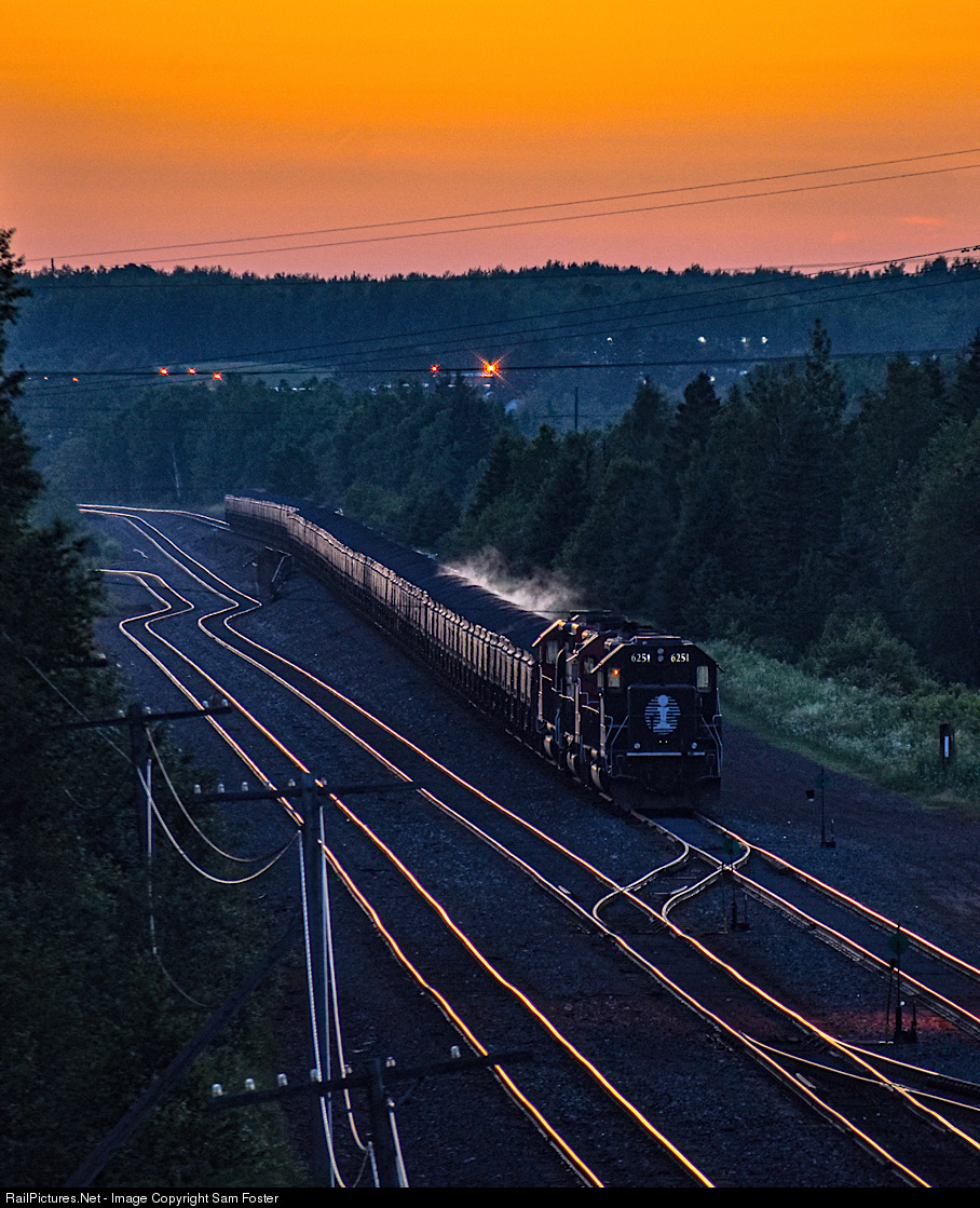 | While being swarmed by countless bugs, I took this shot of IC 6251 sitting with ore train on the west end of CN’s Proctor Yard near Duluth, MN. Northeast Minnesota is a haven for iron ore. Trains come from the ore mines out west and head east to the Duluth ore docks where the ore pellets are loaded onto Great Lakes freighters. |