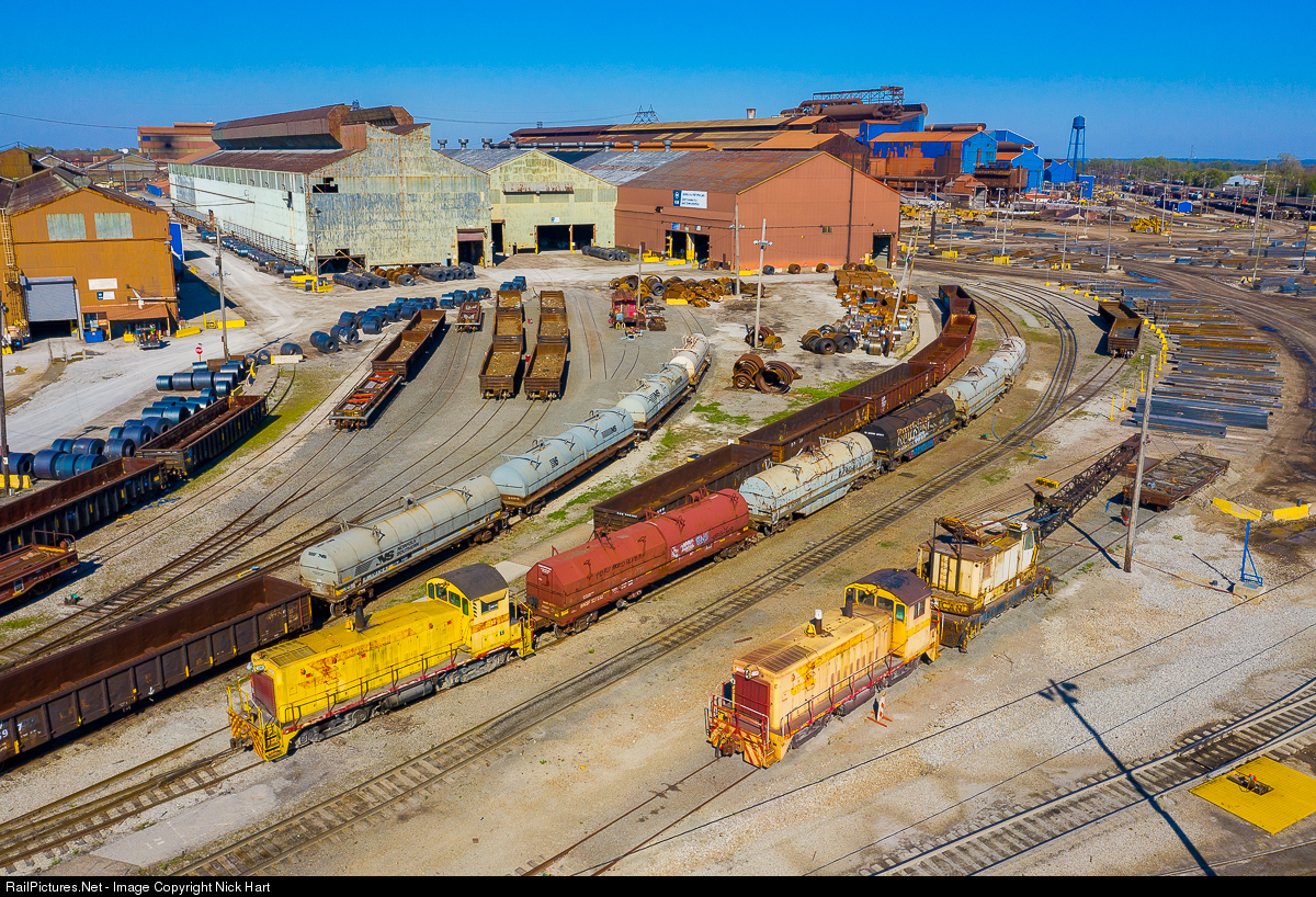 USSX #1248, a vintage SW8, shoves on a cut of steel cars at US Steel's Granite City Works. #1188 has been sitting in that same spot, tied onto that same crane for at least a few years now. One has to wonder if it's in some sort of storage, or perhaps waiting for a return to service at some point. I couldn't find any information for either locomotive when it came to their past, so if anyone has any info to add, please feel free to do so.