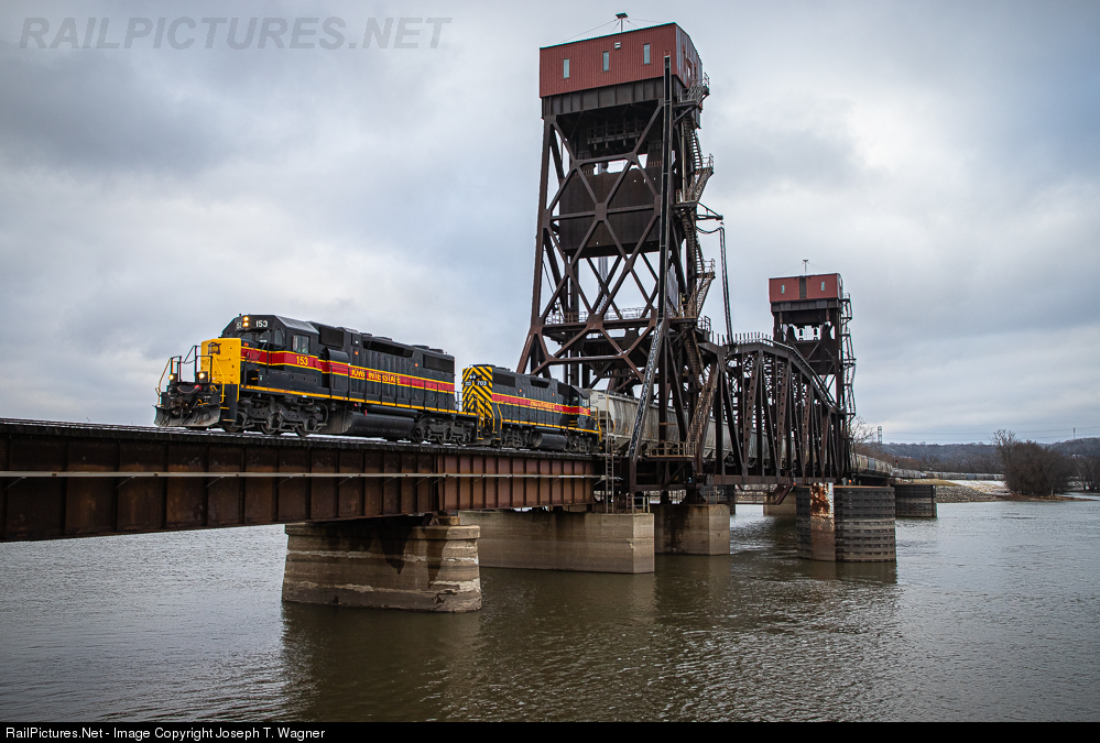 Train built and air-test finally complete, Iowa Interstate's PESI 04 road freight takes the signal to depart off TZPR's West Lead yard track as it slow rolls at 10 mph across the Illinois River lift bridge into Peoria behind a pair of non-turbocharged EMD 645s of both the six and four axle type, respectively. The large 104 (1x103) car consist of Tazewell & Peoria interchange traffic consists mostly of empty grain hoppers returning to Flint Hills Resources in Menlo, IA and the ADM facilities at Cedar Rapids and Clinton, via CPRS, all saving room for a solitary loaded alcohol tank for the CSXT in Chicago. The train will swing north at Bridge JCT onto TZPR's Peoria Uptown Division for the approximate 6-mile trip through the city's downtown area before hooking up with home rails at Peoria Heights for the remainder of its trip to Silvis, IL. At the time of this photo, Iowa's fleet of six-axle EMD SD38-2s were rumored to be storage bound upon the arrival of three new General Electric ES44ACs to the property. The railroad at one time had a fleet of eight SDs (150-157); Originally all built for Reserve Mining Company in October of 1978, they later found themselves in the leasing business being utilized on various railroads throughout the country, sent to GATX (General American Transportation) in the late 80s and LLPX (Locomotive Leasing Partners) in the mid-to-late 90s. Between the years of 2005 and 2007, in an effort to revamp their insignificant locomotive roster, the Iowa Interstate eventually purchased all eight of the SD38-2s from LLPX, along with 22 four-axle GP38-2s, after the then 150-153 were already on property for leasing purposes. Once arrived, the 154 and 155 were painted in company colors at Council Bluffs, IA while the other six were sent down to MidAmerica Car on the Missouri side of Kansas City for their paint and mechanical work. Spending nearly eight years on the system, IAIS later decided to put four of its eight SDs up for sale, the 154-157. Both 154 and 155 were sold January of 2015 and delivered to their new owners, the Chicago South Shore & South Bend Railroad via the BNSF at Rock Island. The pair were later purchased by the Louisville & Indiana (LIRC) for a short stint of use before being returned back to the CSS, which is where the two currently reside to this day. The 156 and 157 were sold April that same year to CIT Equipment Finance Corp (CEFX) and both later going on lease to Cando Contracting Limited north of the border in Manitoba. While retaining their remaining four SDs, 150-153, for another several years, the IAIS made a decision to purchase three new ES44AC "GEVOs" from General Electric in the fourth quarter of 2019, adding on to their current fleet of 17 which were built and delivered between 2008 and 2015. Once arrived, these were to replace the railroad's aging EMD six-axle fleet and the race to secure final photographs of these things were on, to which I participated in. Delivery of these new GEs was completed in February 2020 and just as thought, their four remaining EMD SD38-2s, including the pictured 153, were quickly sent to the locomotive facilities at South Amana, IA for final 92-day inspections and storage prep. The fleet currently sits stored in the RIP tracks at Silvis Yard behind the car repair shop, awaiting a future of uncertainty. Once the latest and greatest power a struggling shortline could get its hands on, now cast aside like many others of their type in the face of bigger and better new motive power.