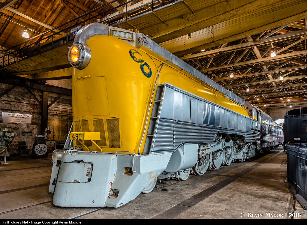 C&O Hudson #490 Occupying a prominent spot in the B&O Museum's car shop exhibit hall is this odd-looking steam locomotive from the post-World War II "streamliner era." You are looking at C&O Hudson #490, a machine that little resembles its original builder's photos. She was built in 1926 by the American Locomotive Company (ALCO) as a class F-19, 4-6-2 Pacific for the Chesapeake & Ohio (C&O) Railway. That's right, she was a conventional-looking steam engine with a different wheel configuration than you see now. She served the railroad for 20 years, first operating on premier passenger trains such as the "Sportsman" and the "George Washington", and later on regular passenger runs.