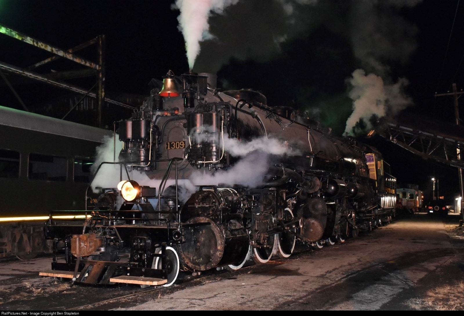| On the night of December 31st, a monumental event occurred in the riverside town of Ridgeley, West Virginia. Former C&O 2-6-6-2 #1309 made a move under its own power for the first time in 64 years. Being a private event, I and a few others were invited to see this great moment in steam history. |