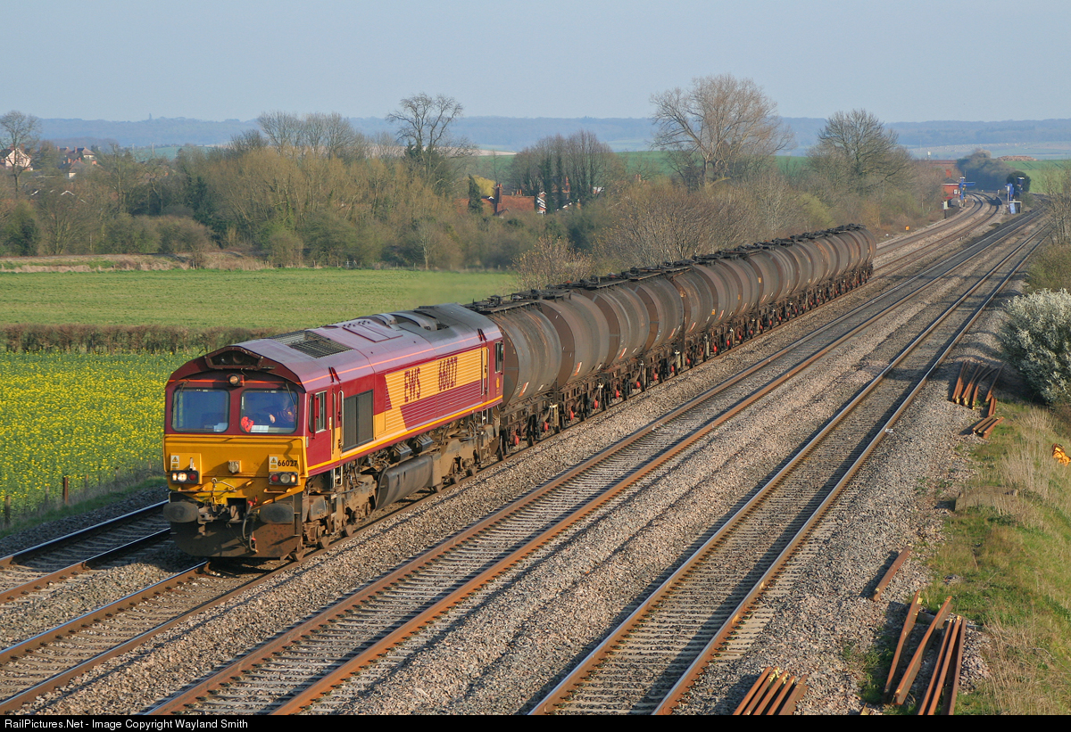 | 66027 passing Cholsey with a train of four wheel tanks, possibly for Bromford Bridge. |