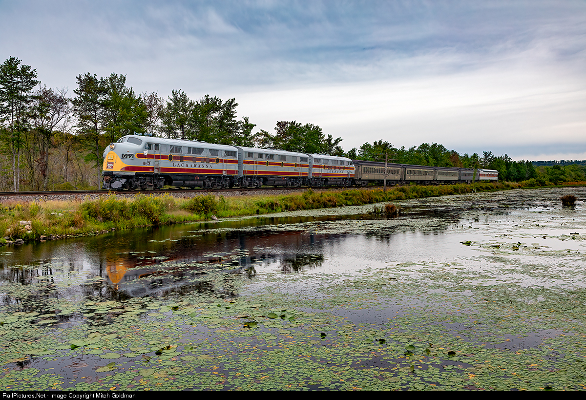 For the Anthracite Railroad Historical Society's 70th Anniversary Convention, a special was operated over the DL/Pocono Main from Scanton, PA to Tobyhanna, PA. Here we see an A-B-A set of Delaware, Lackawanna & Western F units, led by Tri-State Railroad Historical Society F3(A) #663 followed by Anthracite Railroad Historical Society's F7(B) and F3(A) #664. This route is being considered (again) for restoration of service utilizing Amtrak equipment, originating in New York, NY with a terminus of Scranton, PA.