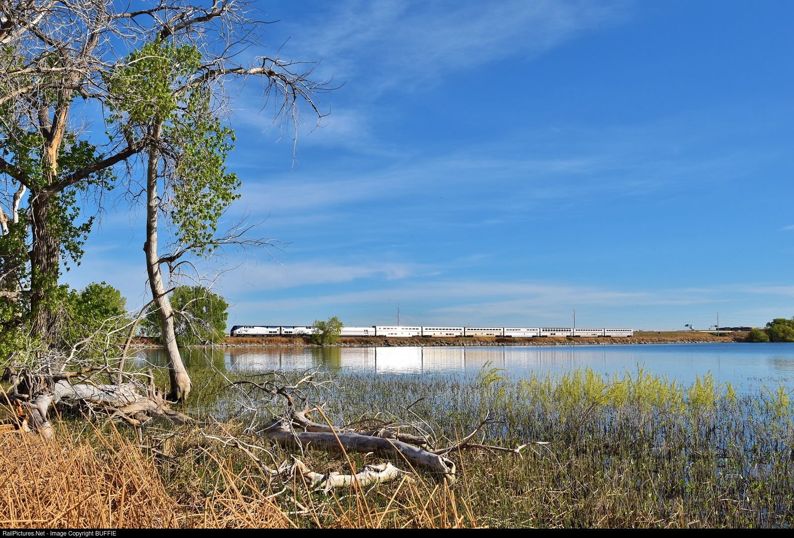 The California Zephyr runs past Barr Lake in Brighton, Colorado, giving riders a quick glimpse of a wildlife area that has a variety of migrating species, and even a few bald eagles.
