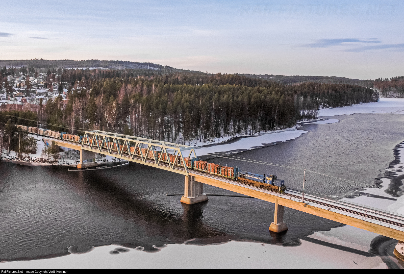 | The scent of chocolate and licorice from Panda chocolate factory in Vaajakoski gets mixed for a short moment with the smell of raw wood when Fenniarail Oy freight train T 7126 crosses over river Haapakoski with Dr18 103 on point |