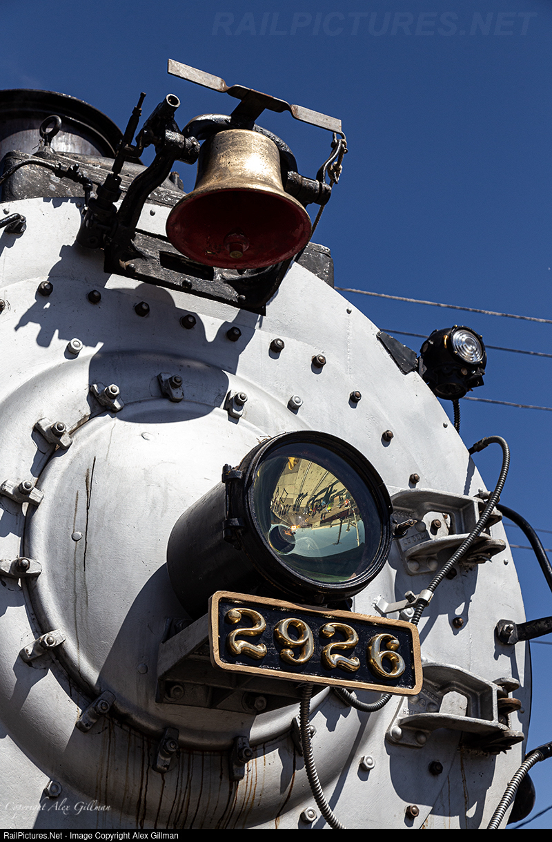 | The headlight of Santa Fe 2926 rests at dim as the locomotive sits on display at the 4th Street grade crossing, located on Rio Metro Regional Transit District's "Sawmill Spur." In a few short hours, the engineer will move the headlight's illumination position to full prior to the short trip back to the New Mexico State Locomotive & Railroad Historical Society's restoration site. |