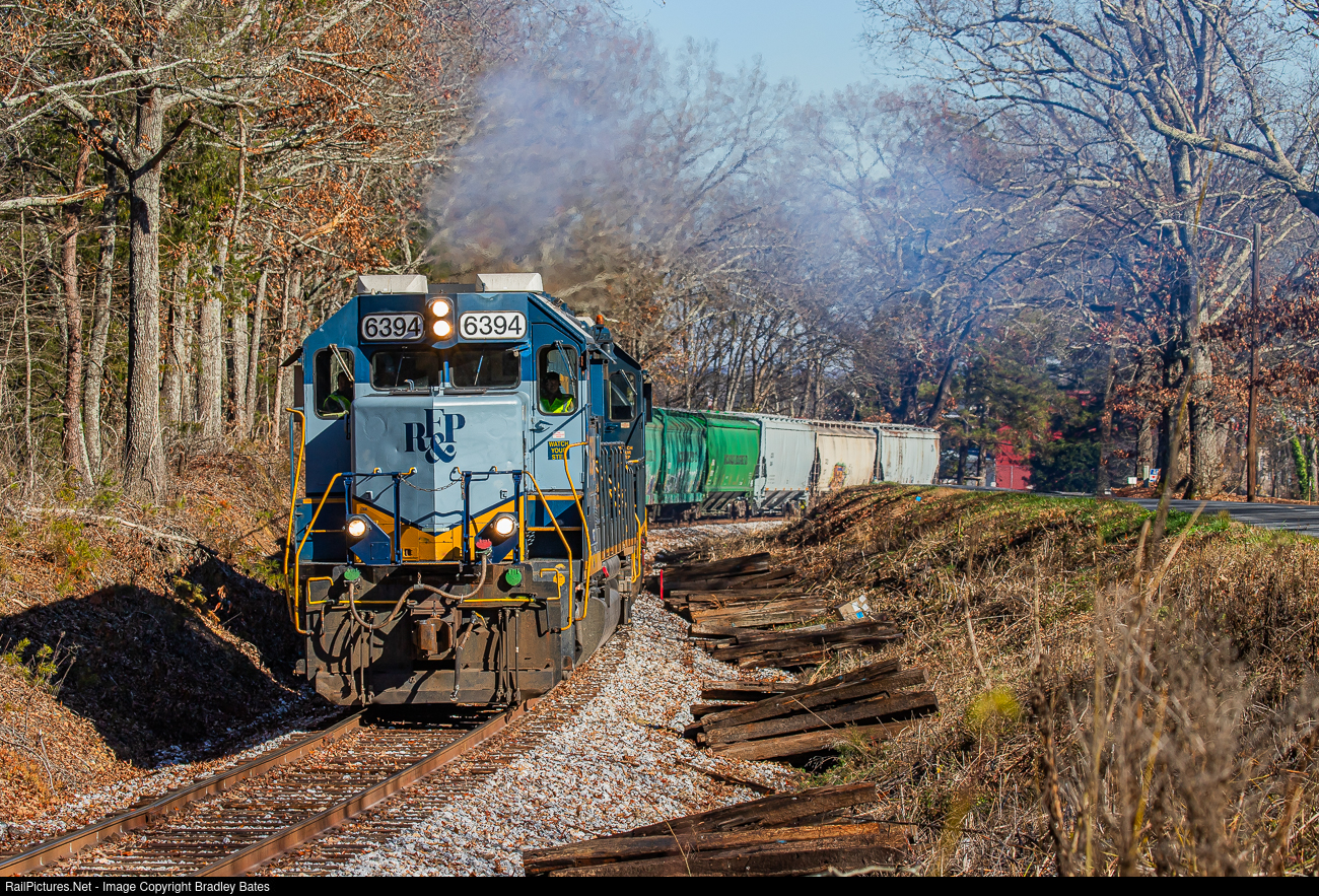 | CSXT GP40-2 #6394 (former RF&P #142) is once again wearing the RF&P paint scheme on the nose of the locomotive, only this time in a new and more modern form. No clue who painted it, but it sure looks good! The 6394 is seen in this image leading CSX local L810-11 through the curves at Taylorsville, GA. on their way to work Rockmart and finally Cedartown where they'll finish their day. |
