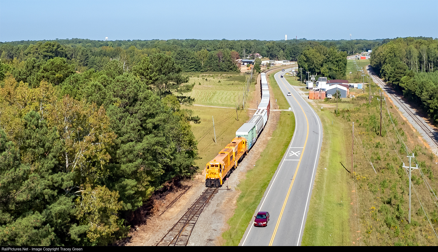 Arriving from the Anderson NS interchange, the Pickens Anderson Job waits to cross Highway 178, the Belton Honea Path Highway, and enter the Greenville & Western yard.