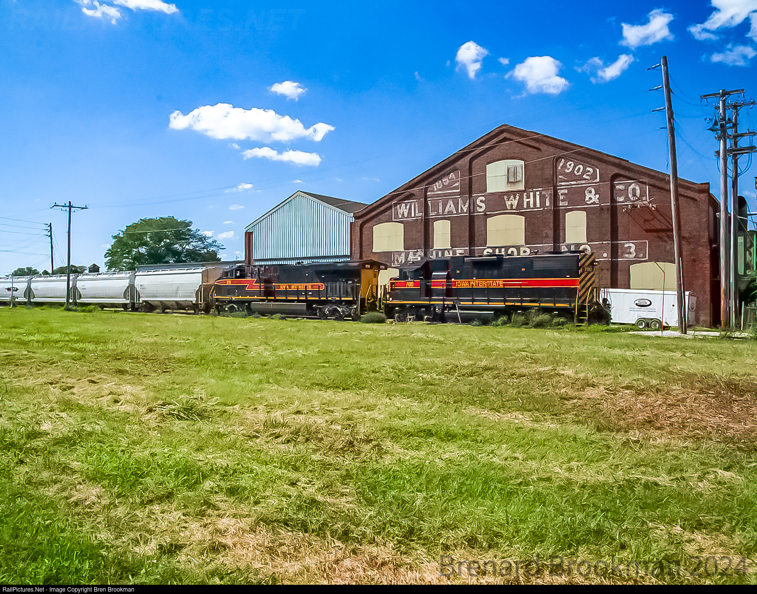 Little engine that could.. IAIS GP38-2 number 700 running Long Hood First drags IAIS GEVO 518 and a massive string of hoppers back through Moline, IL by a city relic, the old Williams White & Co. Building on their way back to Silvis after working Rock Island Yard over in Rock Island.