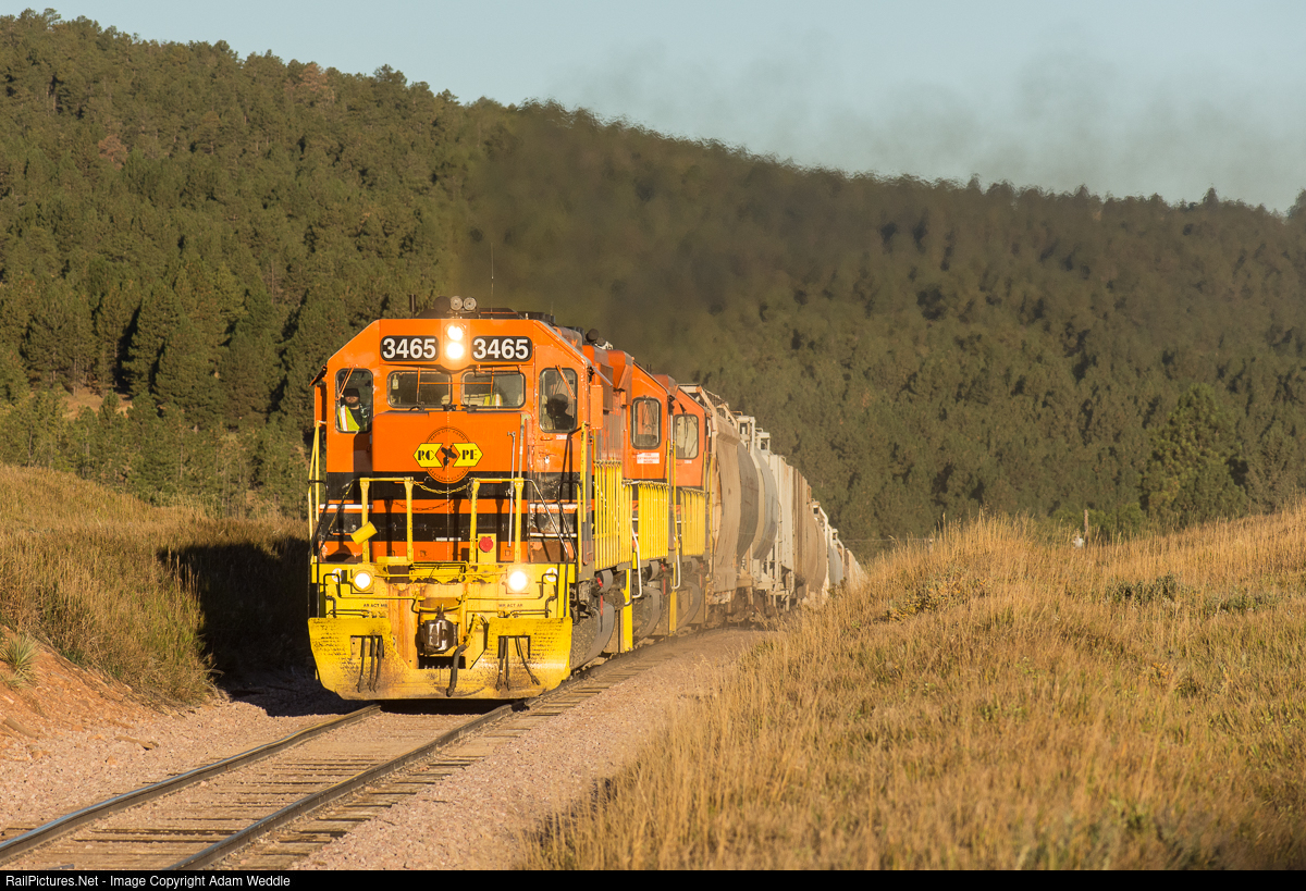The engineer on LBFRC has the sanders on, and his three 40s in notch 8 as they crawl up a hill West of Sturgis. The train will be tied down shortly at Merritt Road, where it will sit for a few hours waiting for another crew to come out of Bell Fourche.