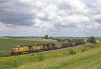 Westbound hopper near the top of Arcadia hill on UP's east-west mainline.