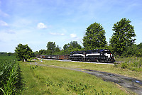 Finger Lakes Railway heads East on Sunday morning under a beautiful blue sky with locomotives FGLK 2003, 2002 and 2001.