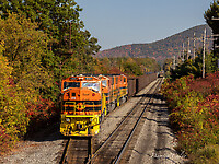 Wellsboro & Corning SD40-2 309 leads the Buffalo & Pittsburgh's SIRI as it gets on the move heading out of Bradford, Pennsylvania along the bank of Tunungwant Creek. CN 8800 is part of the day's c... (more)
