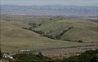 The Morning southbound glides through the beautiful rolling hills of Chittenden Valley with the hills of San Benito in the backdrop.