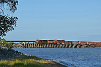 Central Vermont Train 490 eases across the East Alburgh trestle at the north end of Lake Champlain. The speed limit is 10 MPH. The trestle and drawbridge are still in service between West Swanto... (more)