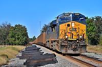 A little ways from home rails, these FEC units are leased to CSX which are using them on rock trains. Here we see one leaving from a crew change as CSX Q237 with racks is also crew changing on the... (more)