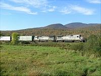 Canadian Pacific Tec Train is rolling though the Missisquoi River Valley as it skirts the Canada/U.S border at Glen Sutton