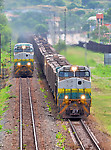 It's not a race, but, it look like with both loaded trains, passing through Governador Valadares city.