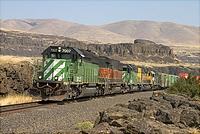 BNSF 700 leads a morning eastbound Z train along the Columbia River at Horsethief Lake State Park.