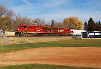 The same power that brought train 490 into St Paul yesterday brings the 491 back west today, this time with large multimark CP 5911 leading the way. Here, they power up the grade between Kimball a... (more)