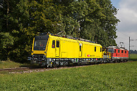 Test run of the new maintenance vehicle (EHFZ, Erhaltungsfahrzeug) for the Gotthard Base Tunnel, Xem 181 # 011, built by Harsco Rail in Aachen/Germany. The self propelled vehicle can run under 150... (more)