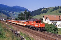 1144 218 passes the town sign at Matrei which proclaims the message Gruss Gott (greet God). The train is the 1606 Innsbruck to Brenner local.