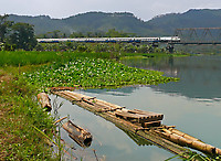 KA 124-Sawunggalih Utama Express passing in the Serayu Bridge, when somebody are fishing in the river bank. The Background of this photo is the Slamet Mountains and the Serayu River, nearby the Ke... (more)