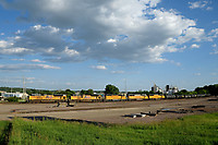 DAIR4027, former SP SD39, departing Sioux City near War Eagle Park and alongside I-29 with another train of mty's for Dell Rapids, SD. I found it very refreshing to see 3 units in a paint scheme o... (more)