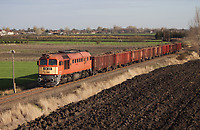 Loaded sugar beet freight train is rolling toward Szarvas in last autumn daylights.