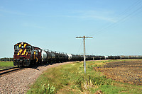 A 107 car RRVW freight from Edgeley, ND is a few miles from terminating at Breckinridge, MN. RRVW 2005 honors Charles H. Clay, a long time Soo Line employee and one of two owners of the RRVW.