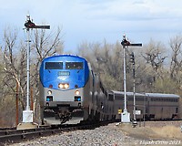 Seen here, Amtrak's westbound Southwest Chief #3 passes by some semaphore signals in Watrous, NM on a cold and cloudy winter afternoon. Decorated in the Phase III paint scheme, this train features... (more)