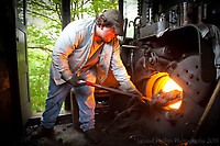 The Fireman on Shay No. 6 shovels coal into the heart of the beast while performing a photo run-by at Whittaker, W.Va., on a rainy afternoon along Cass Scenic Railroad. Thanks to the MSRLHA and th... (more)