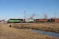 Huron and Eastern train 701 is heading northbound near Kochville Road in Zilwaukee passing over a small drainage ditch on its trip from Durand to interchange with the CN.