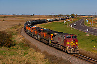 The Northtown to Lincoln manifest heads through the scenic Buffalo Ridge on a beautiful fall day in Southwestern Minnesota.