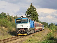 The diesel locomotive 750.716-3 hauling a passenger train from Frenstat pod Radhostem to Ostrava hl. n.