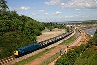 Heritage, and now, the only mainline class 40, 40145 whistles onto the sea wall at Dawlish with an Enthusiast train for Plymouth.