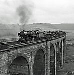 Three-cylinder 2-10-0 No 44 1226 is working hard over Altenbeken viaduct on the climb from Paderborn with a northbound freight train that includes some military hardware. This viaduct, with its 24... (more)