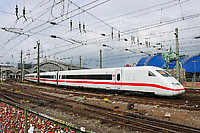 ICE 2 of the DB with power head 402 # 035 leading is running the ICE 553 from Koblenz via Bonn-Köln-Wuppertal-Hamm-Hannover to Berlin Ostbahnhof, passing Wuppertal-Steinbeck station.