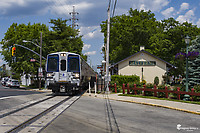 Long Island Rail Road train 867, consisting of Kawasaki M9s, heads west on "Long Beach (LB) 1" past Valley Tower in Valley Stream, NY on the... (more)