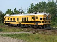 Sperry Rail Service inspection car 129 "P.E. Kennedy" is tied down on the Kerite siding in Seymour. The former doodlebug was built by the St. Louis Car Co. in July of 1925 for the Lehigh Valley as... (more)