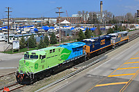 GE Demonstrator is head out on NYSW stacktrain (NTV-4 on Conrail) NY-10 east at Howells NY. This unit demonstrated on NYSW for a time on their stack trains and then also on their branchline betwe... (more)