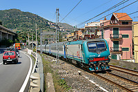 Morning InterCity from Messina to Catania captured as it lines the sea coast in the town of Letojanni.